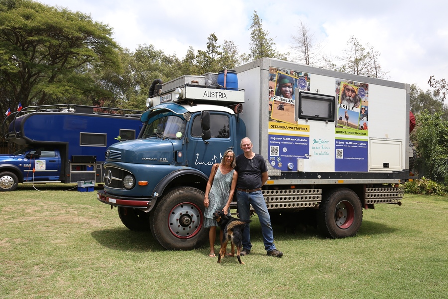 Wir tingeln die Küste entlang nach Norden, über Kilifi und Malindi bis zur Insel Lamu. Danach durch den Tsavo East Nationalpark, der uns mit vielen Tieren und einer Reifenpanne überrascht, nach Nairobi. Chris Handschuh von der Jungle Junction kann sich noch gut an uns erinnern, vor 18 Jahren waren wir schon Gäste auf seinem Campingplatz. Und noch jemanden kennen wir in Nairobi: Thomas Riegler. Getroffen haben wir ihn erstmals in Griechenland, mittlerweile sind wir Freunde und er zeigt uns das Nachtleben der Millionenstadt. Danke, Tom! Es war interessant, lustig, aber auch anstrengend.