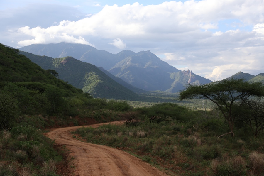 Wir lieben diese bergige, karge, dünn besiedelte Gegend, die nach Regenfällen dennoch aufblüht. Weniger ansprechend hingegen ist die Piste von Baragoi nach Maralal, extrem mühsam und mies. Wir sind sie damals schon gefahren, aber so schlecht hatten wir sie nicht in Erinnerung. Nie wieder, schwören wir uns! Zumindest hat uns der Regen auf dieser Strecke verschont, dafür öffnet der Himmel nach Maralal seine Schleusen. Dennoch wagen wir einen Abstecher in den Süden, zu Kenias Teeplantagen und Richtung Massai Mara. Wir parken auf einem Berghang mit Blick auf den Nationalpark, bekommen Besuch von Zebras, verschiedenen Antilopen, Pavianen, Giraffen, Kühen, Schafen und Hirten. Sehen in der Ebene Elefantenherden und lauschen nachts Hyänen- und Löwengebrüll. Was für ein Abschied von Kenia!