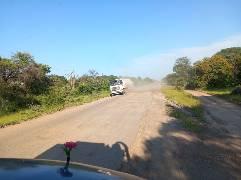 Unsere Tage in Sambia sind gezählt. Wir fahren entlang des Sambesi Richtung Namibia. Ein Fehler! Die Straße ist eine Katastrophe. Gebaut und finanziert wurde sie von Deutschland. Das war 2004 … Kleine Asphaltstückchen sind noch vorhanden, der Rest besteht aus Schotter, Staub und vor allem Schlaglöchern! Peter muss sich beim Fahren so konzentrieren, dass er von der Landschaft nichts mitbekommt. In der flachen Sumpfebene blühen gerade überall weiße, duftende Lilien und 1000e Vögel tummeln sich darin. So schön! Danke, Sambia!