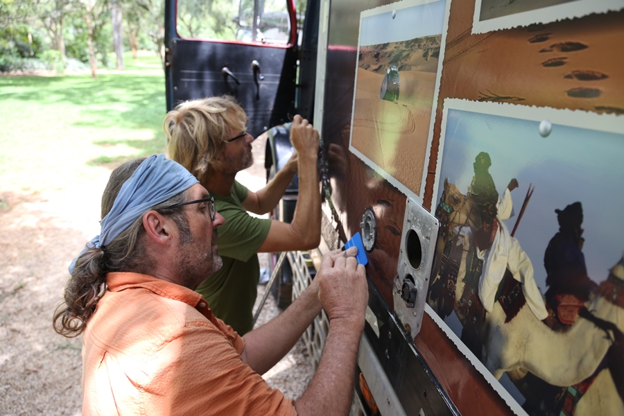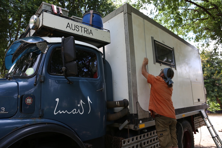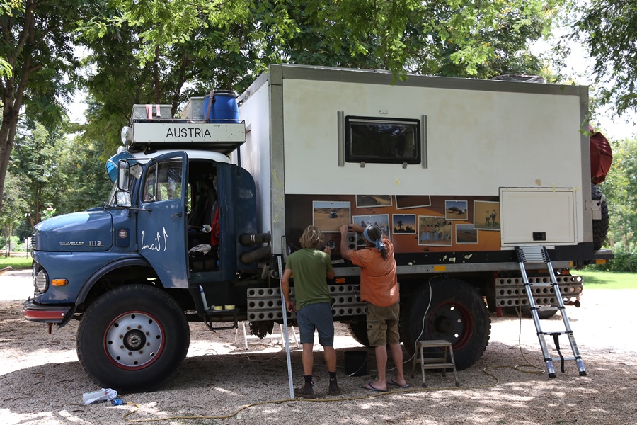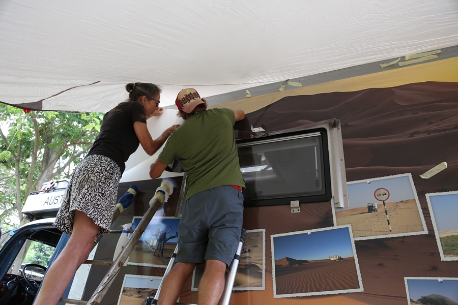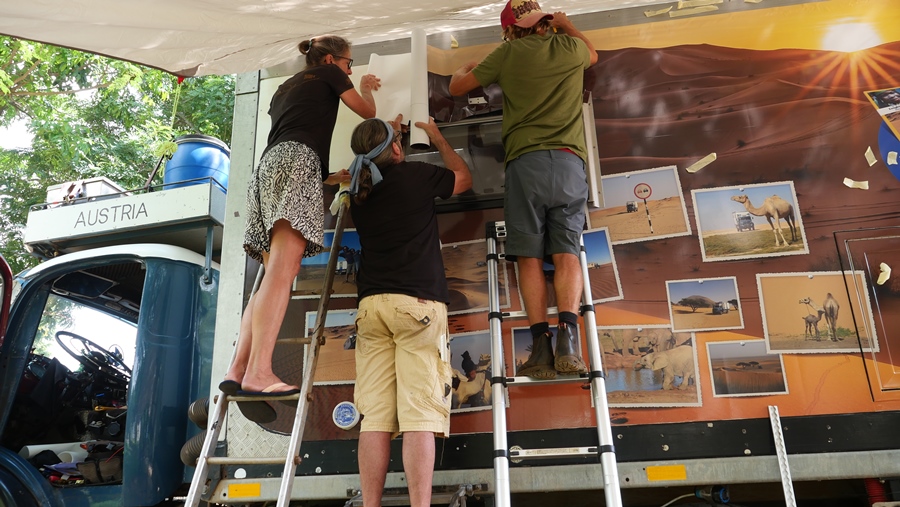 Wir haben von Österreich Folien mitgenommen, die nun am Aufbau angebracht werden. Dank Rene schaffen wir diese mühsame Arbeit in einer Woche. Wir sind sehr zufrieden mit dem Ergebnis, es gefällt uns wirklich gut!