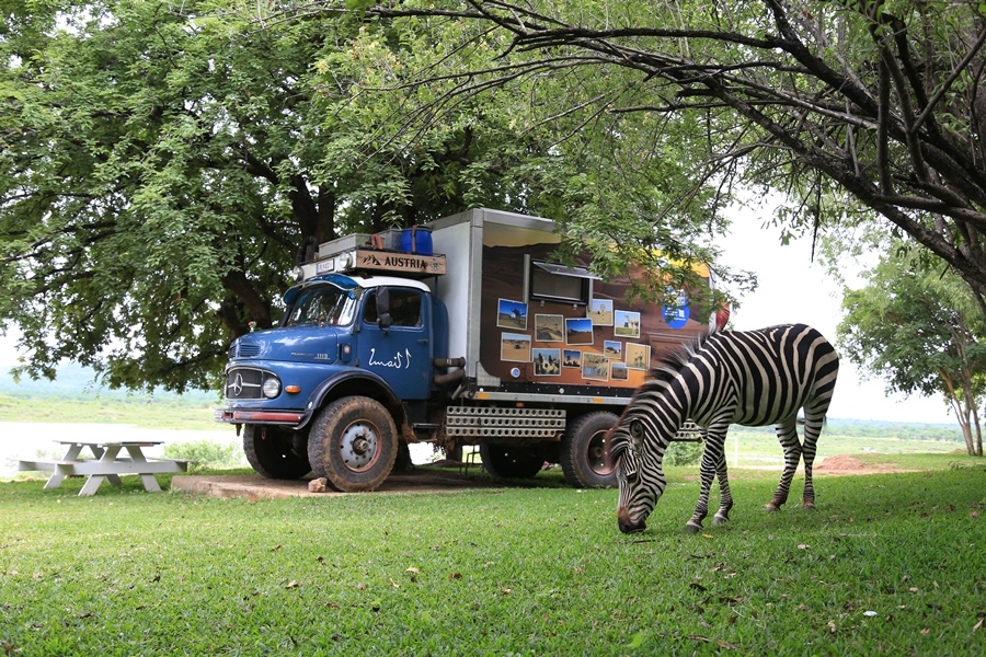 Mit dem schönen August fahren wir nochmal ins Sambesi Tal, an den Kariba-Stausee. Die Manager der Lotri Bay Lodge begrüßen uns herzlich. Wir sind die einzigen Gäste. „Wisst ihr wie wir den Tachometer eures Fahrzeuges in Südafrika nennen?“, fragt uns Bruce. Die Antwort kommt prompt von ihm: „Kalender!“ Gefolgt von schallendem Gelächter. Wir fühlen uns sogleich wohl hier, trotz der Hitze. Gleich noch ein Ratschlag vom Südafrikaner: Nicht zu knapp zum Ufer gehen, letztes Jahr wurde sein Hund vom Krokodil gefressen. Und bei den Einheimischen gibt es immer wieder tragische Unglücksfälle.